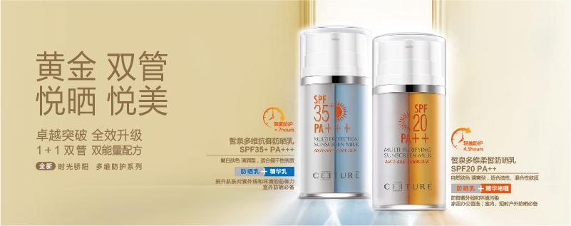 皙泉全新研创“复活藻”肌肤双能量配方,对抗光老化,由源头守护肌肤!独创植物防晒因子,不仅抵挡97%的UVB及UVA,抗击“波长更长、伤害力更强”的UVA+;肌肤双能量配方,修护肌肤同时,提升肌肤活力,从源头赋予肌肤新生力量!